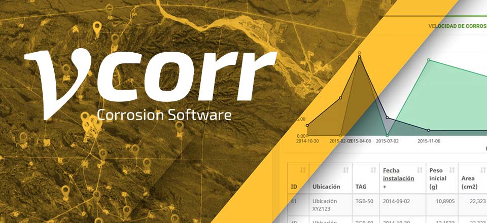 VCORR es el software de gestión de corrosión que permite administrar la gran cantidad de puntos de control de corrosión existentes en yacimientos y plantas de tratamiento de gas y petróleo. Se ha diseñado de acuerdo a los criterios de la norma NACE RP0775 e integrándolo con un sistema de georreferenciación para obtener una imagen satelital con el estado de alarma de cada punto de medición.